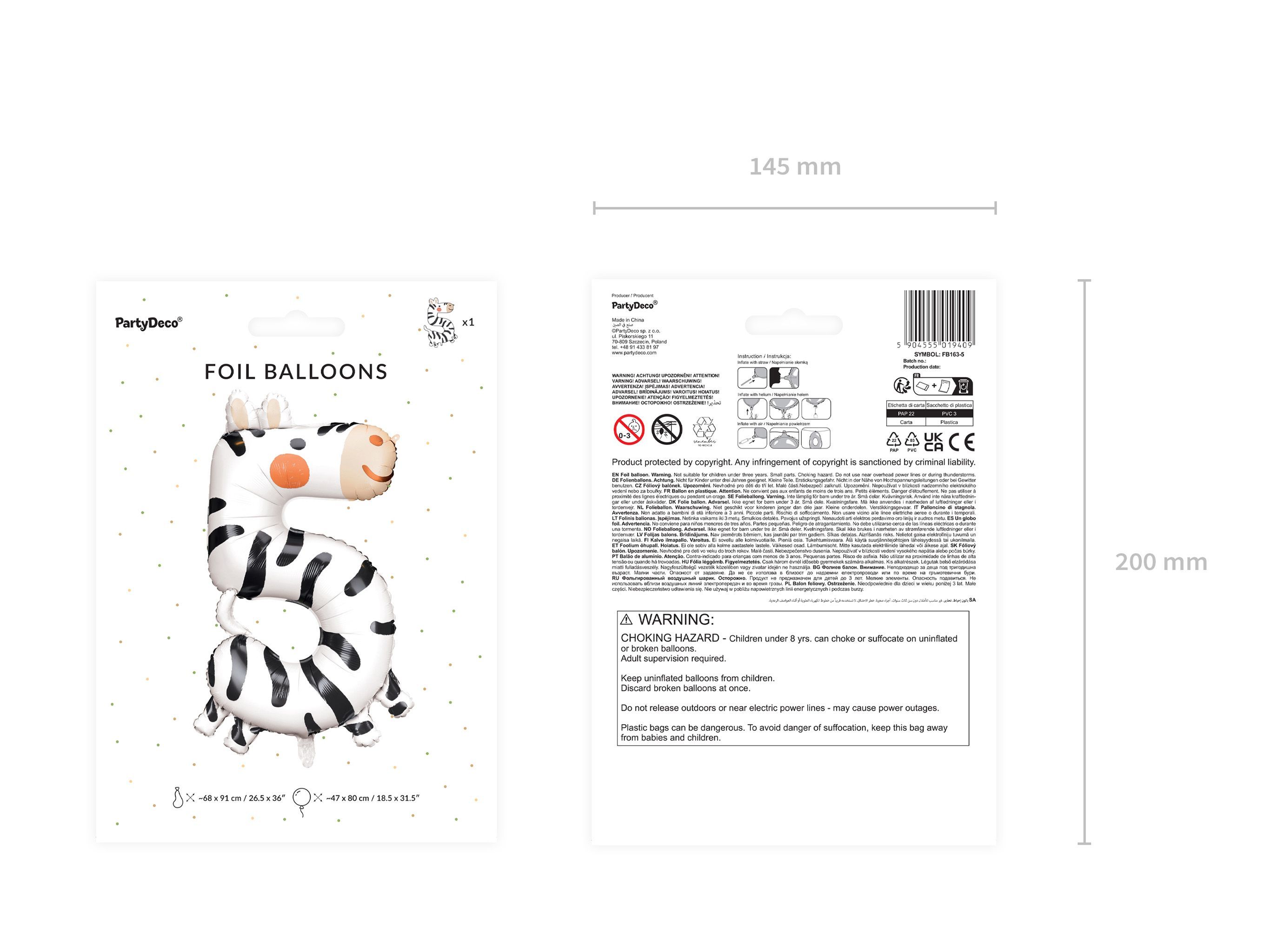 Folienballon Ziffer 5 Zahlenballon 81cm Zebra Schwarz / Weiß