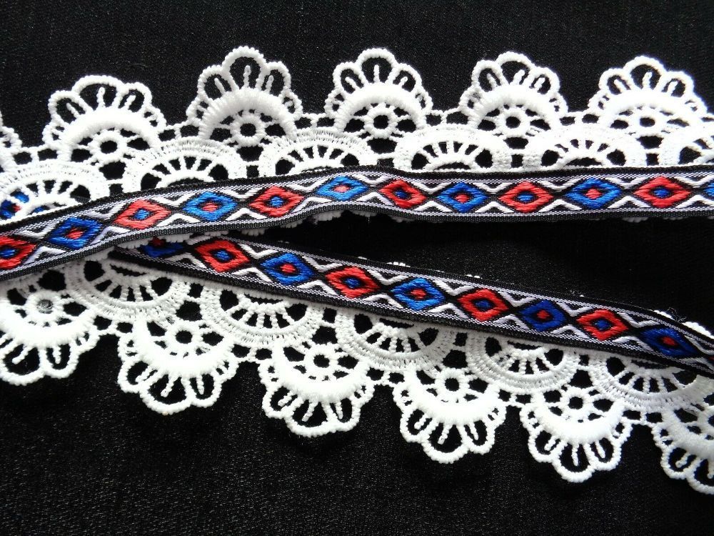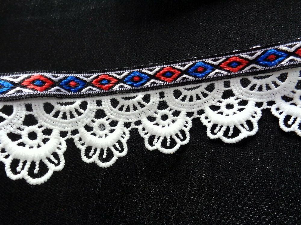 Folklore Ethno Band, Spitze, Aztekisch, Indianisch, Boho, Hippie, rot, weiß ,40 mm