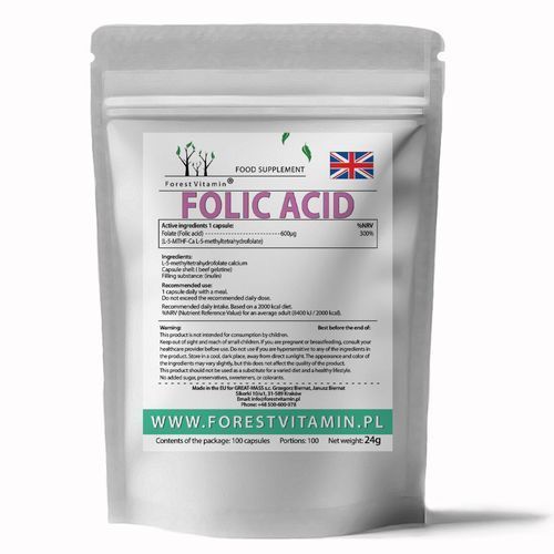 Folsäure 600mcg 100 Kapseln - Folat L-5-MTHF - Schwangerschaft - Forest Vitamin