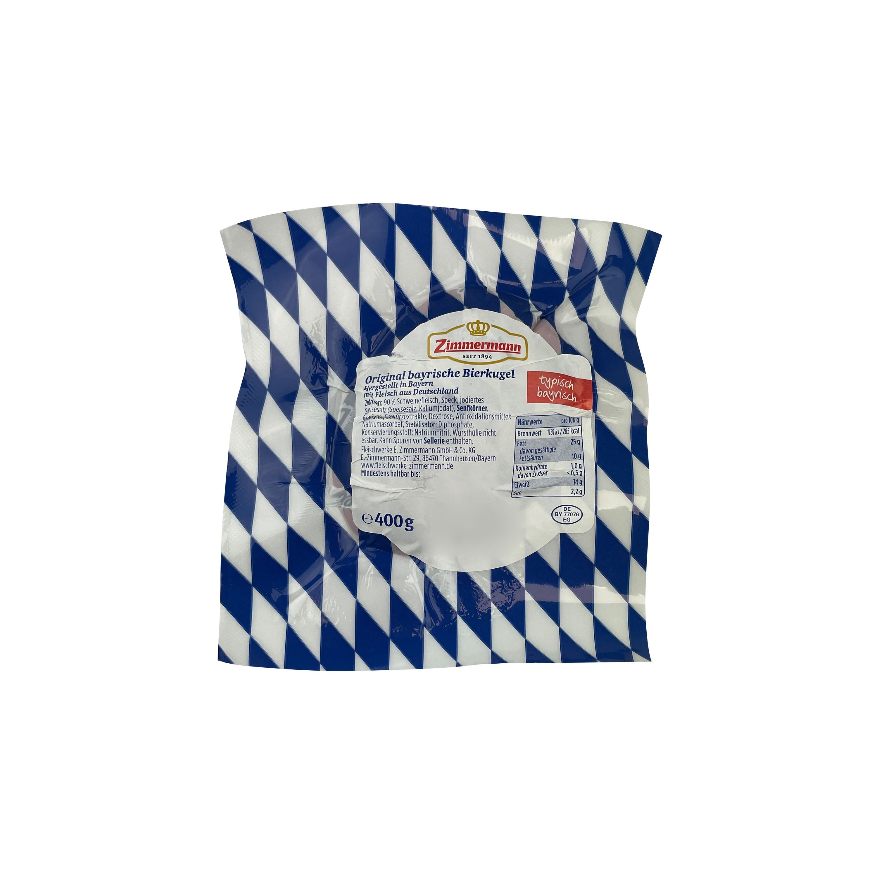Food-United bayerische Bierwurst Bierkugel von Zimmermann Fleischwerke 2x 400g