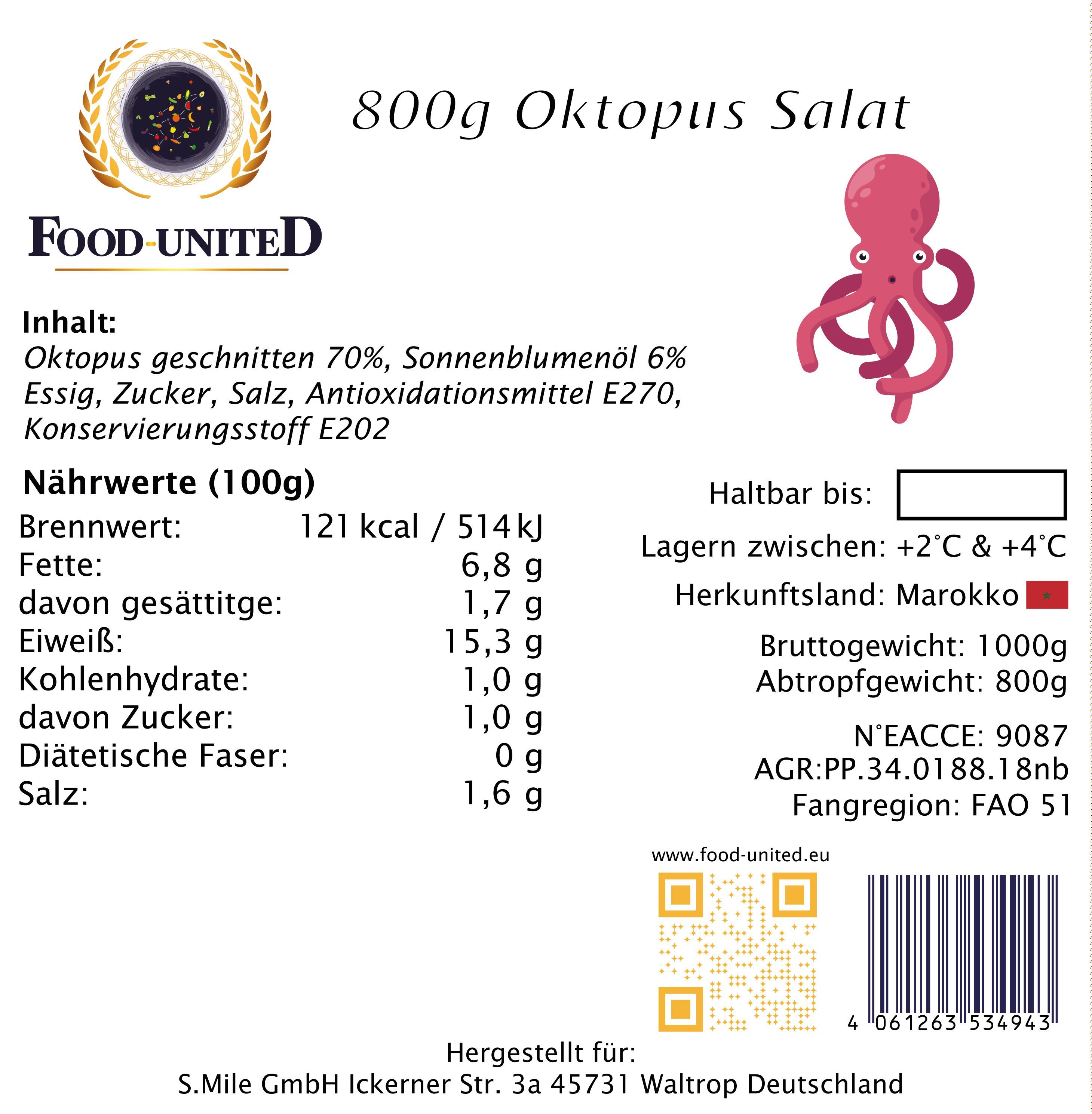 Food-United Oktopus Salat 800g geschnitten und mariniert zart Tintenfisch-Salat