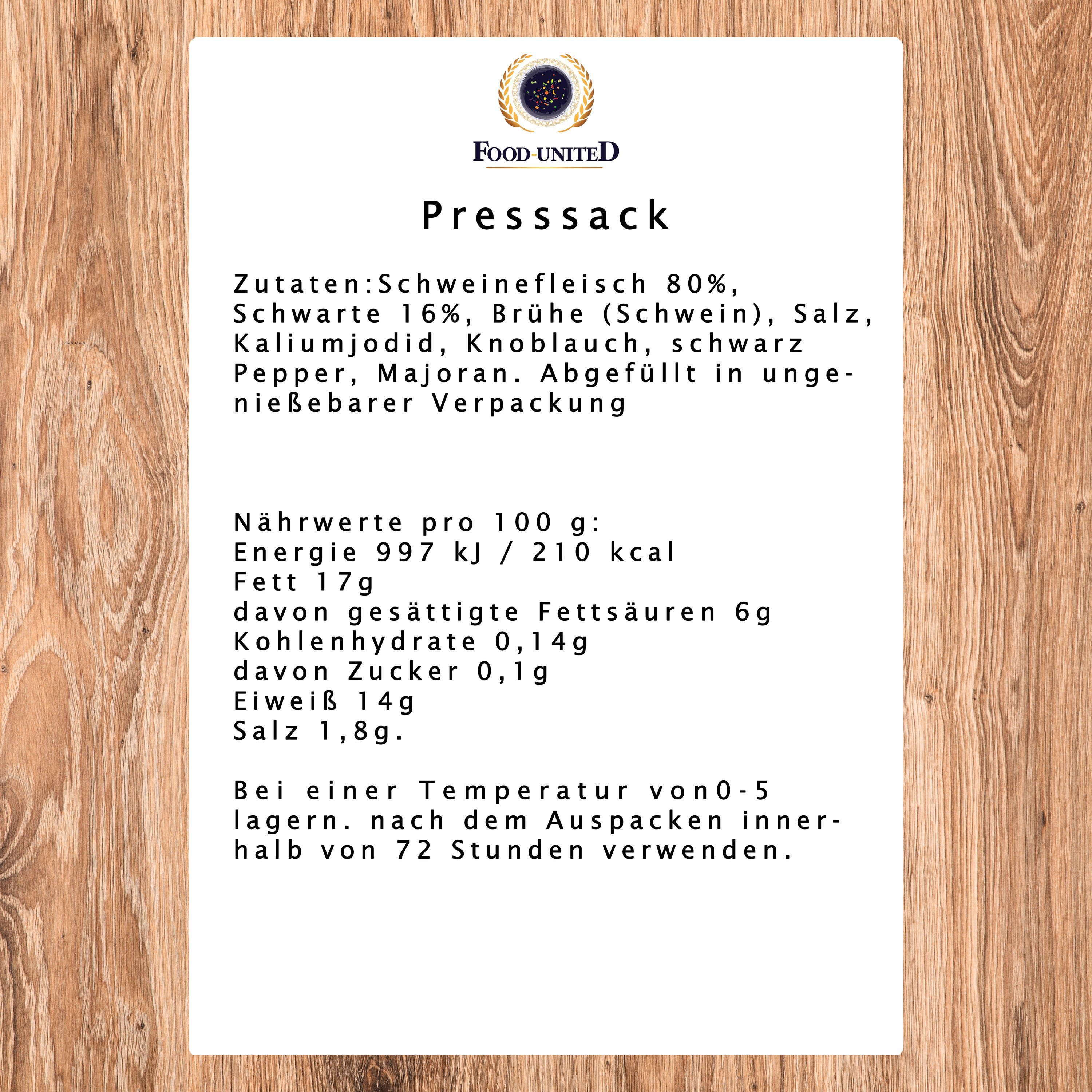Food-United Presskopfwurst GROß ca. 1500g Presssack Kochwurst Saumagen Blunze