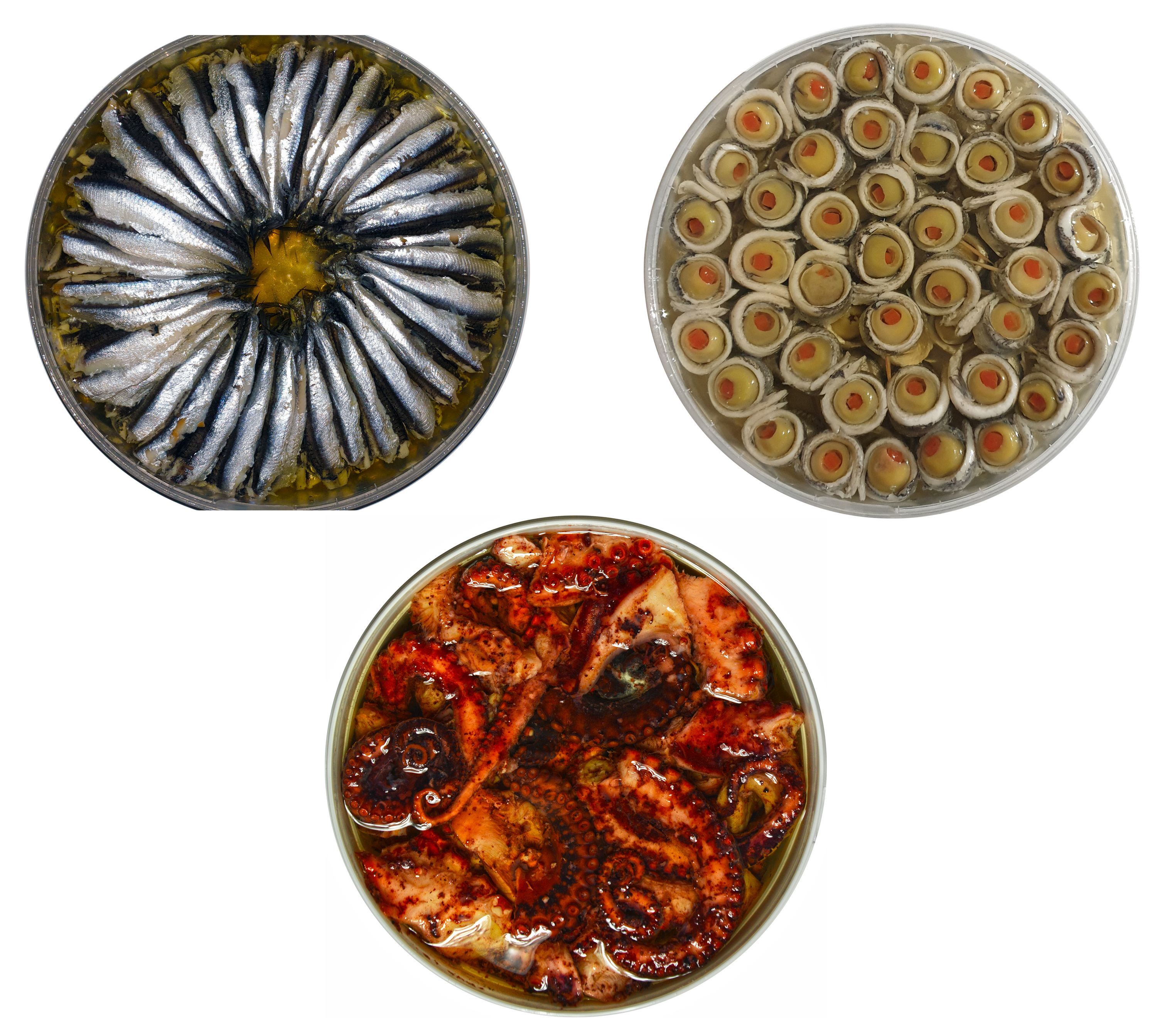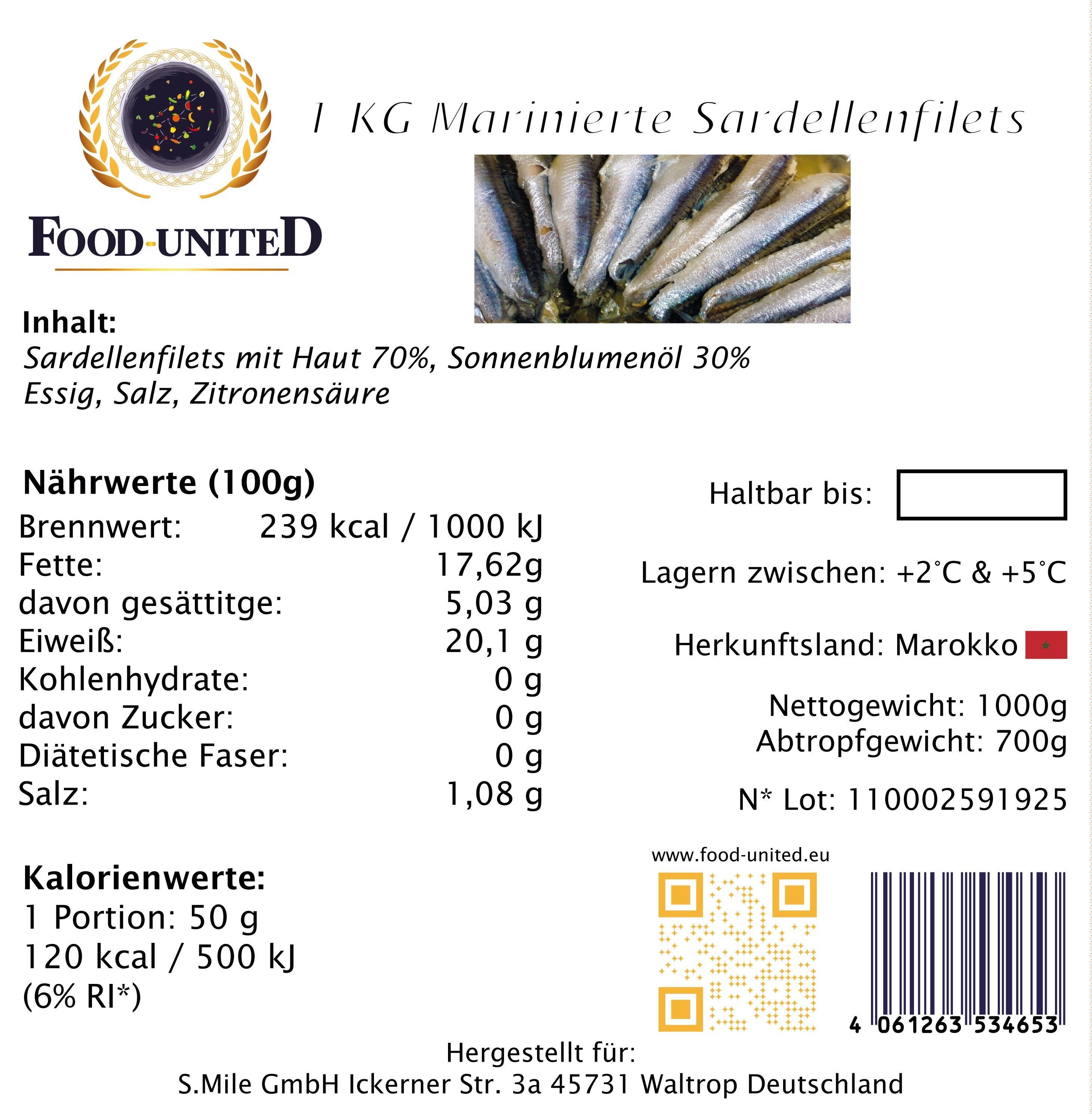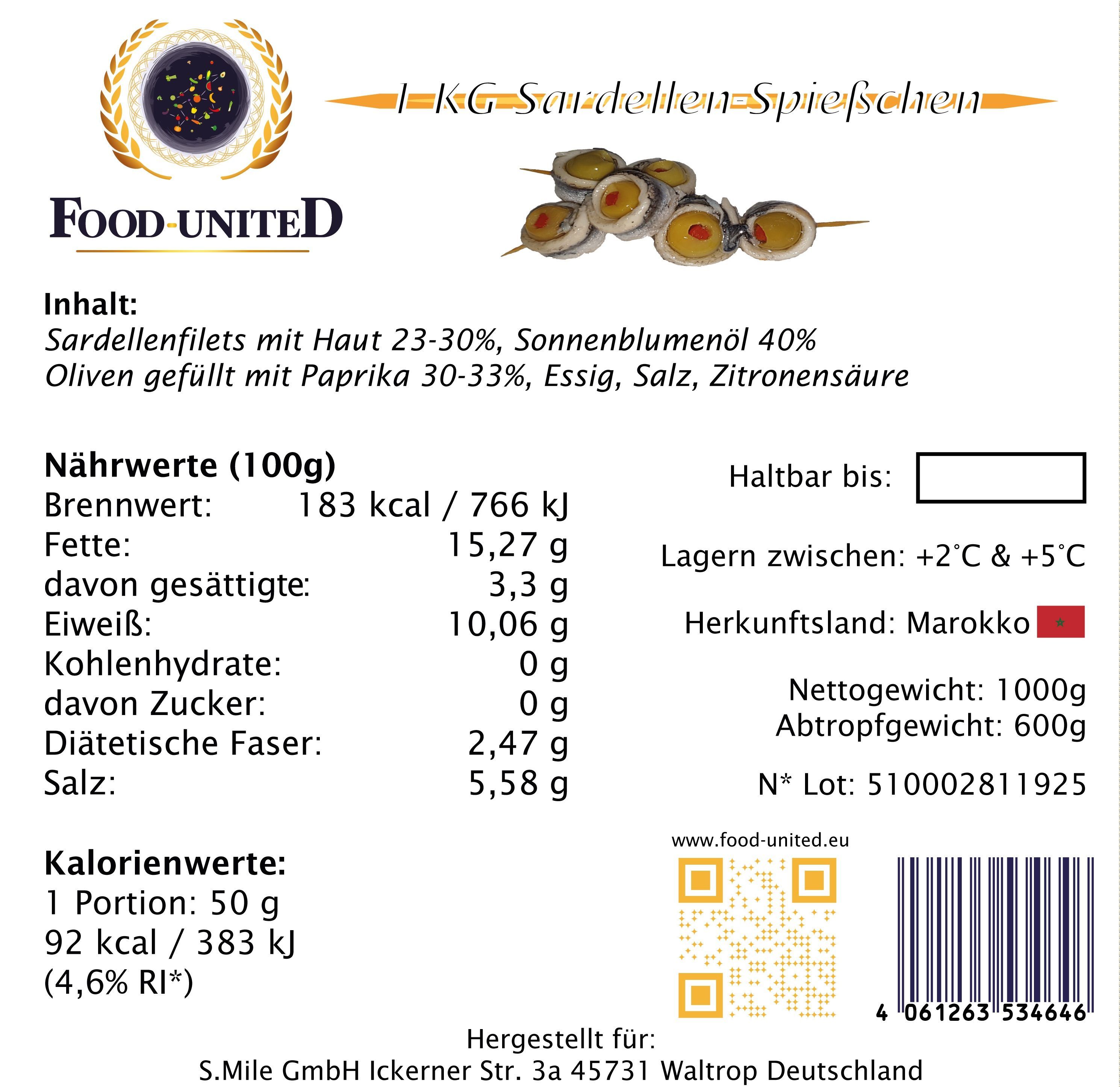 Food-United Set 2 700g Sardellen-Filets und 600gSardellen-Spießchen und 800g Oktop