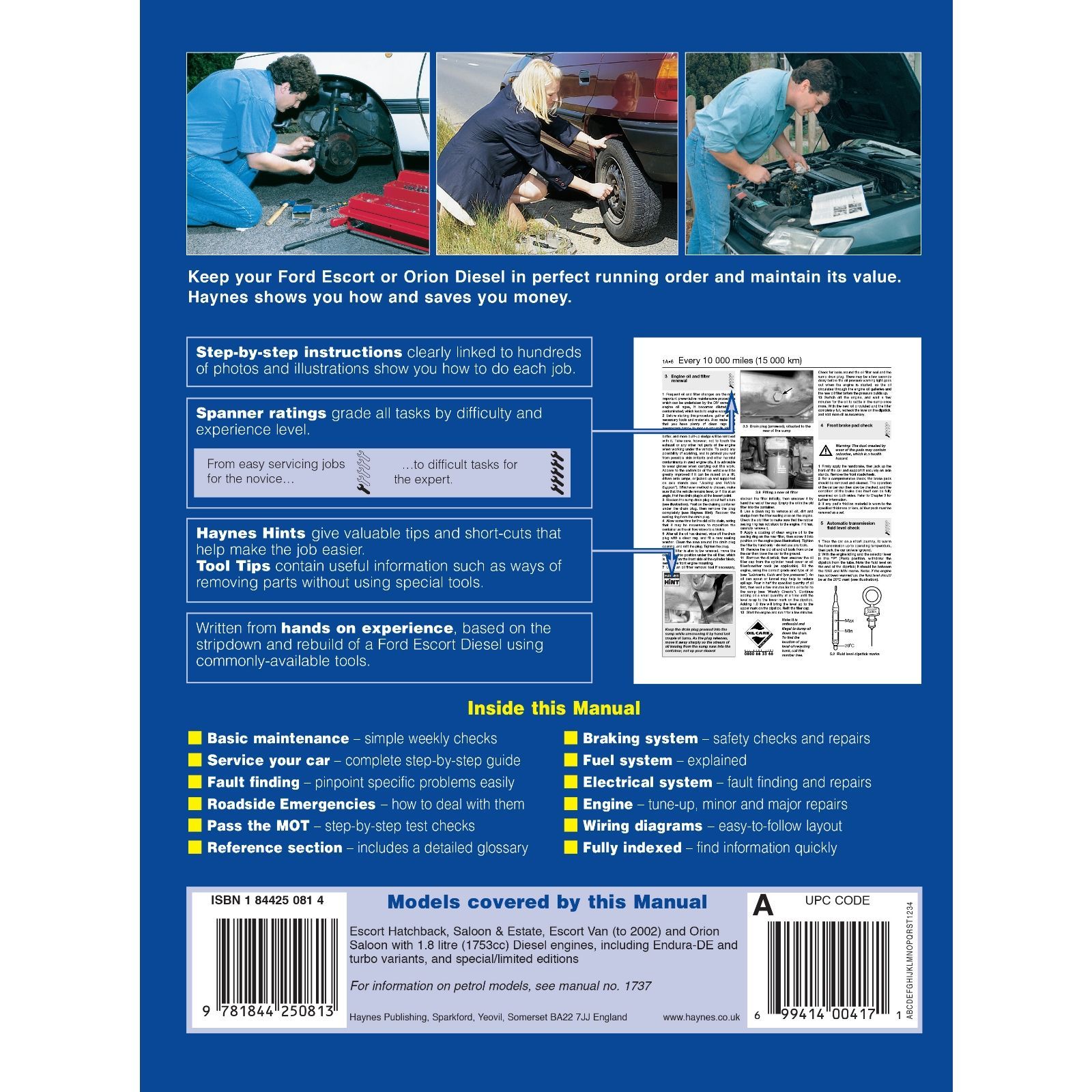Ford Escort Orion 1990-2000 Diesel Reparaturanleitung Haynes