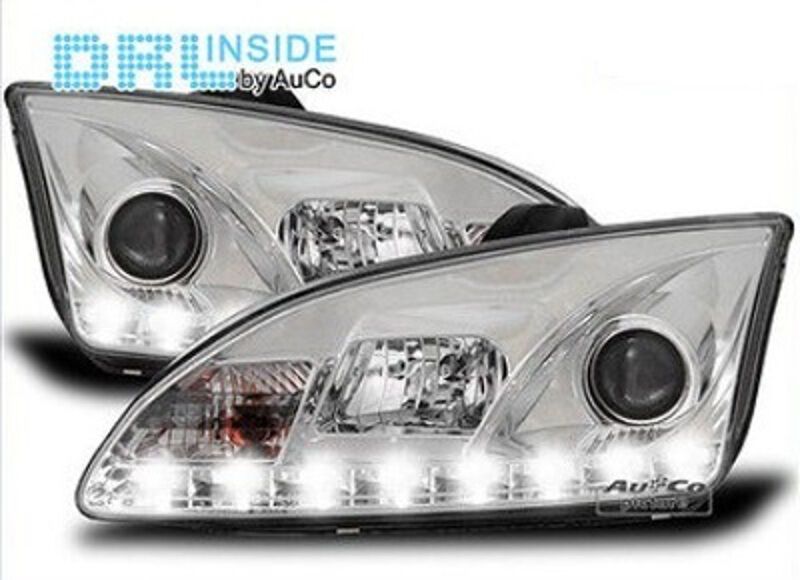 Artikelbezeichnung 1 Satz = 2 Stück Scheinwerfer mit LED Tagfahrlicht und automatischer Wechselschaltung für Ford Focus C307 • Bj.: 2004-2.2008 • in Chrom • europaweite Zulassung im Bereich der STVZO auch für TFL • mit Tagfahrlicht + Dimmfunktion • für 3 4 und 5-türer Modelle • mit Leuchtmittel auch
