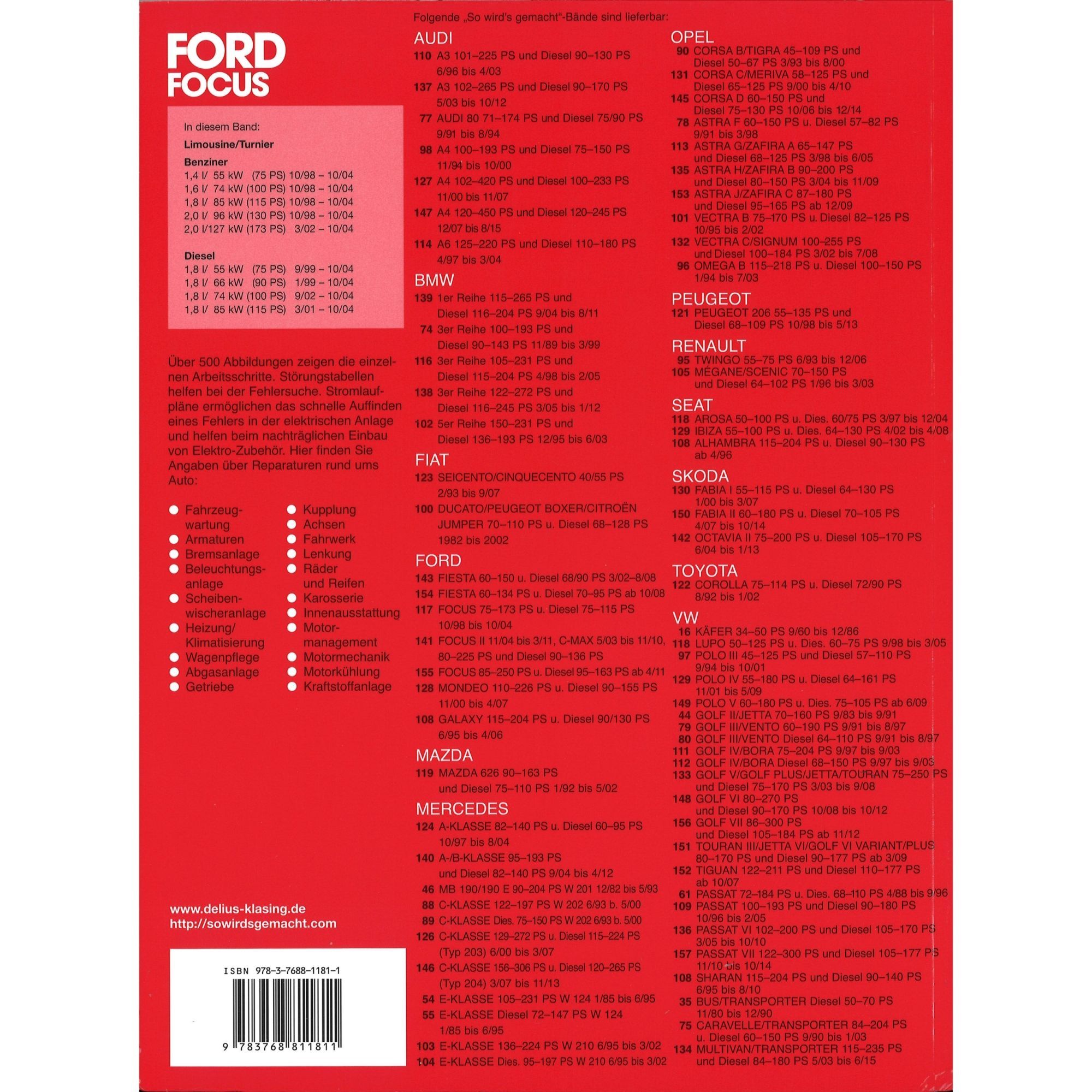 Delius Klasing Verlag Ford Focus I Typ DAW DBW DNW 1998-2004 So wirds gemacht Reparaturanleitung