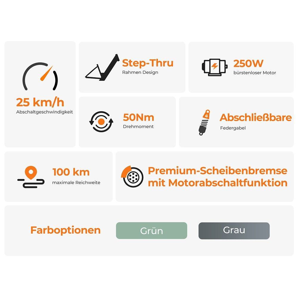 Foride Roamer 1 ST 25km/h 36V250W 13Ah Elektrofahrrad, Grün