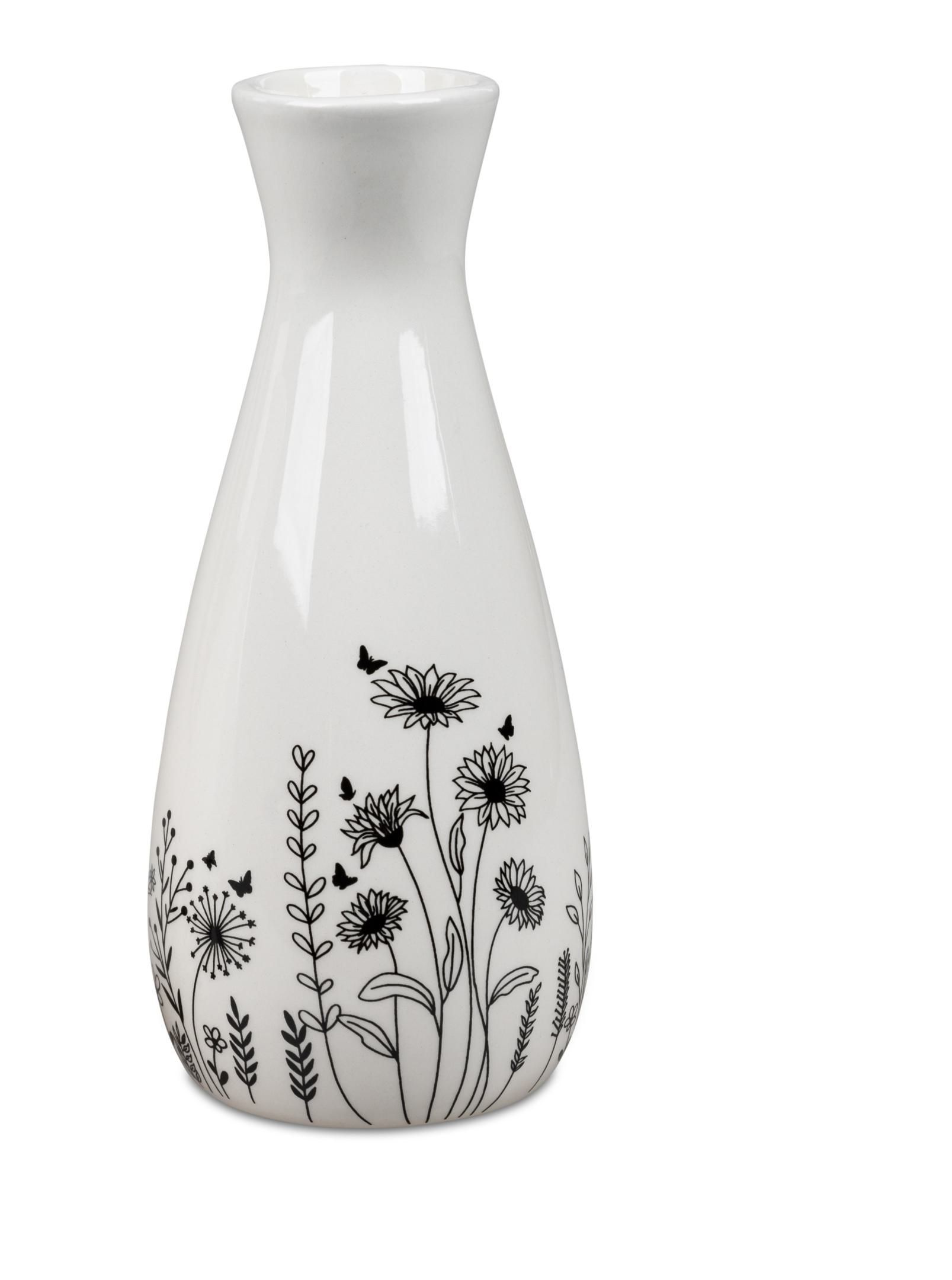 Formano 1 Stück Blumenvase Dekovase Vase aus Keramik Vase 13cm Blumenwiese schwarz/w