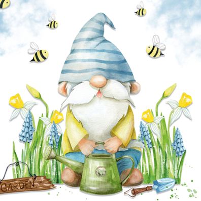 Servietten Papier 33x33cm 3-lagig Zwerg im Garten Motiv 20 Stück Bunt