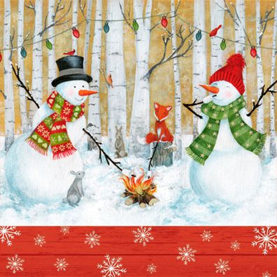 Servietten Papier 33x33cm Schneemänner und Waldtiere Motiv 20 Stück