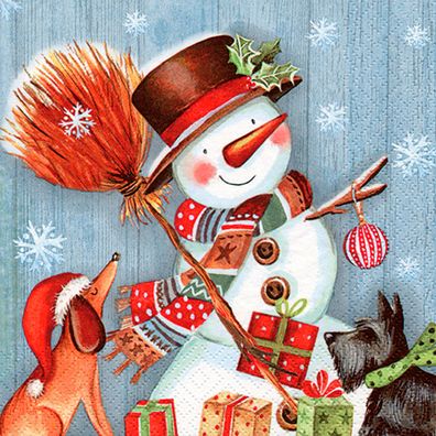 Servietten Papier 33x33cm Schneemann und Hunde Motiv 20 Stück Bunt