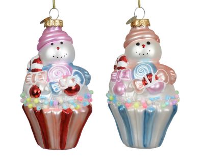 Christbaumschmuck Glas 11,6cm Schneemann Muffin Figur 1 Stück sortiert