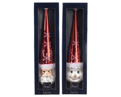 Christbaumspitze Weihnachtsmann / Schneemann Glas 30cm 1 Stück sort