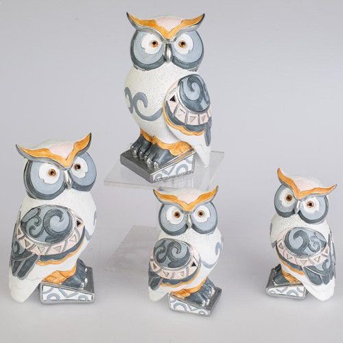 Formano Formano Deko Eule Spiegel Dekor Elemente bunt bemalt Kunststein Tier Figur NEU