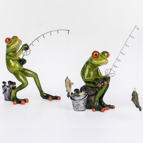 Formano Formano Deko Figur Frosch Angler sitzenend oder stehend mit Angel, Fisch, Eimer