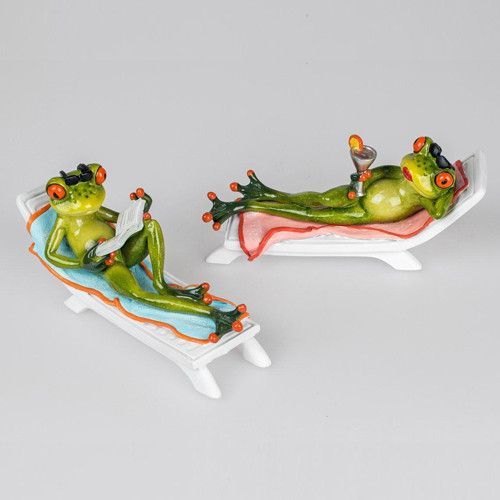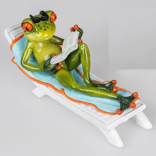 Formano Formano Deko Frosch in Urlaub auf Liege blau rosa