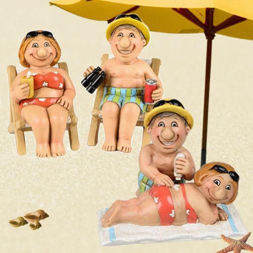 Paar im Liegestuhl, Kunststein-Figur, aufwendig von Hand gestaltet und bemalt.