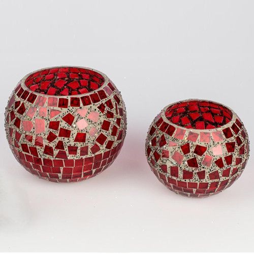 Formano Formano Deko Windlicht Teelicht Mosaik rot Karo Glas