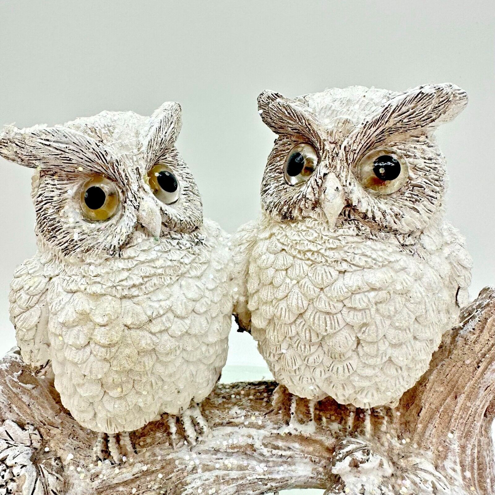 Formano formano Eulenpaar "Winterzeit" auf Ast Zweig mit Glitzer Schnee Eule Eulen Paar
