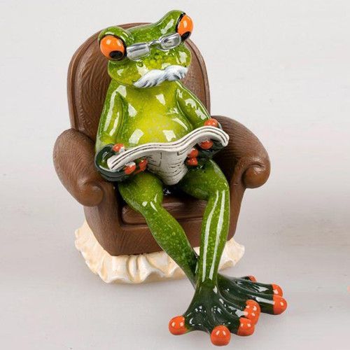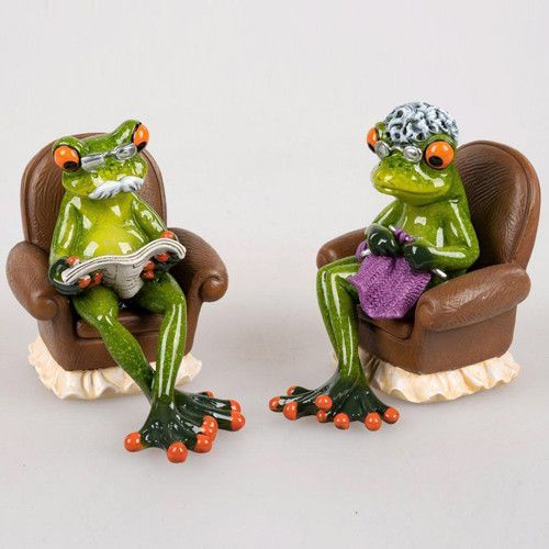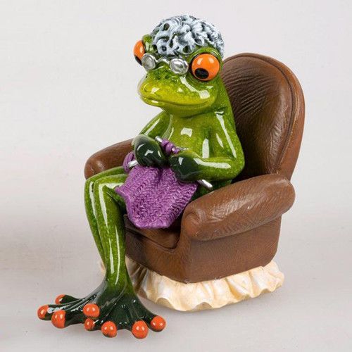 Formano Formano Frosch Oma und Opa im Sessel Zeitung lesen Stricken Deko grün lila
