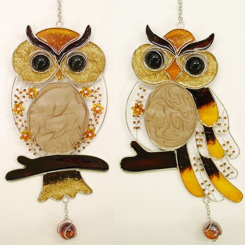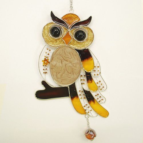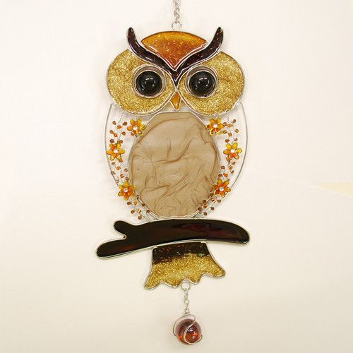 Formano Formano Hänger Eule auf Ast Tiffany Fenster Deko Kugel Glas braun orange gelb