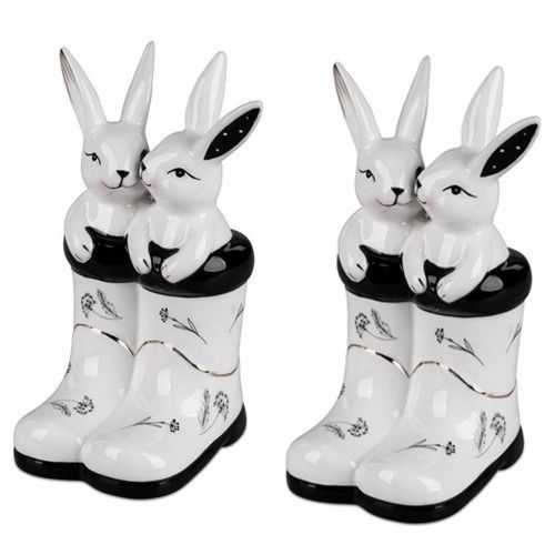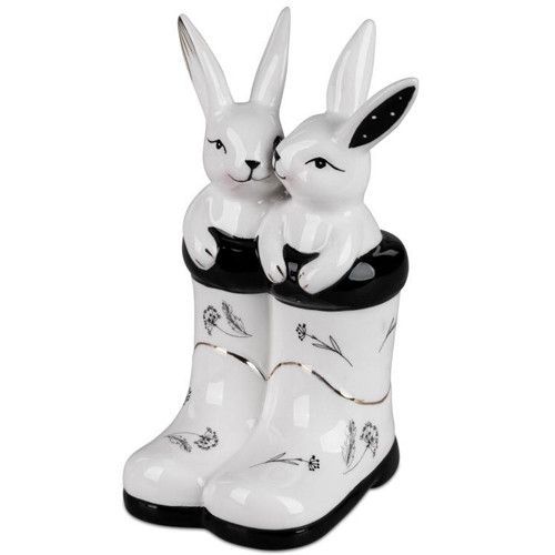 Formano Formano Hasenpaar im Stiefel Ostern Deko schwarz weiß Hase Paar Keramik NEU