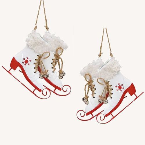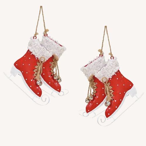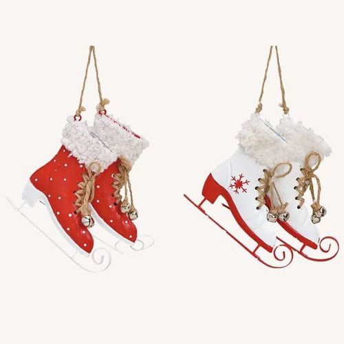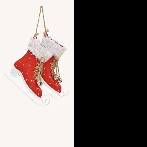 Formano Schlittschuhe Paar Kunst Pelz rot weiss Hänger Baumschmuck Weihnachten NEU