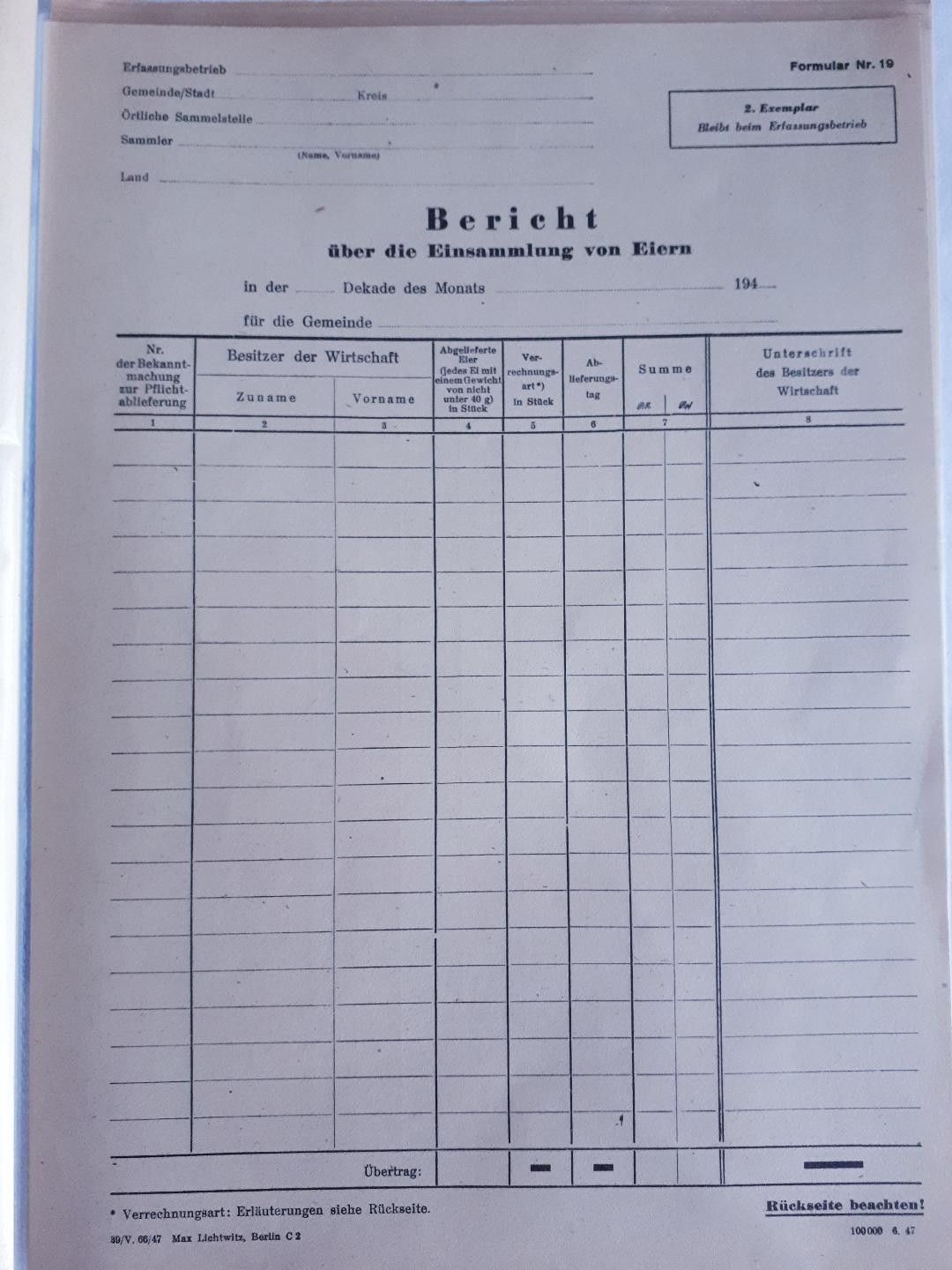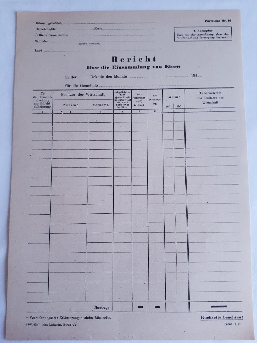Formular Bericht über die Einsammlung von Eiern Exemplar 1 und 2 blanko * das gewünschte Exemplar bitte in der Liste auswählen! (dazu Text oben rechts auf dem Formular) Zustand: gut - gebraucht mit kleinen Gebrauchsspuren (die Seiten sind altersbedingt gebräunt)