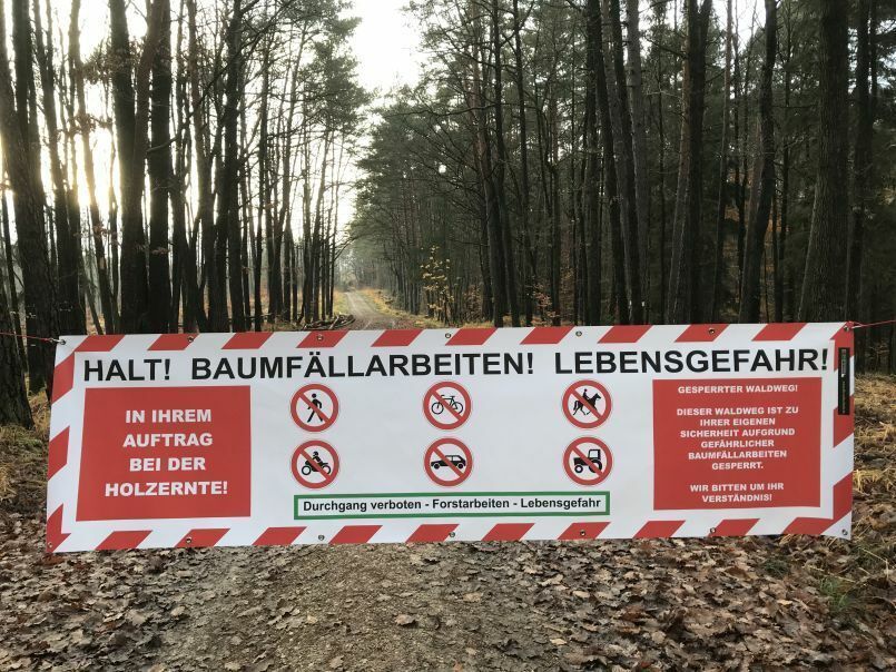 Forst-Absperrbanner 50x60cm inkl. Zubehör - 6 Varianten - auf Wunsch mit Logo
