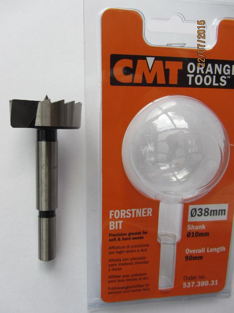 Forstnerbohrer/ Zylinderkopfbohrer SP-Stahl D=38 mm L=90 mm Schaft 10 mm CMT