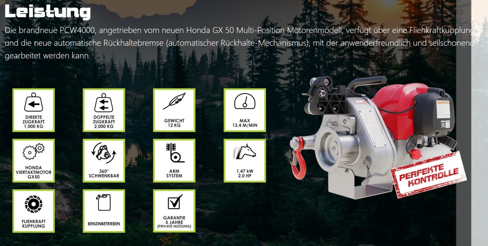 Forstseilwinde Spillwinde PCW4000 - Forstwirtschafts-kit / NEU 2020