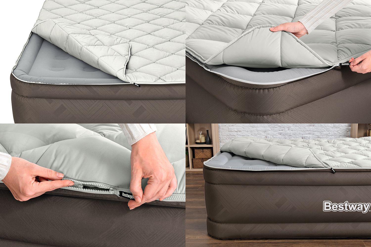 Bestway. Fortech™ Doppelluftbett mit Reißverschlussbezug & integrierter Elektropumpe 203