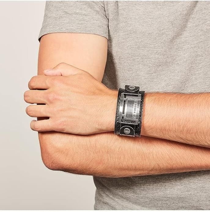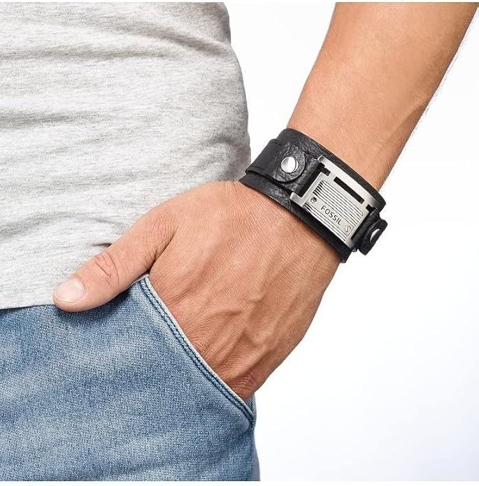 Fossil Fossil Herren-Armband JF84816040 Leder Edelstahl Schwarz Silber Vintage 25 cm