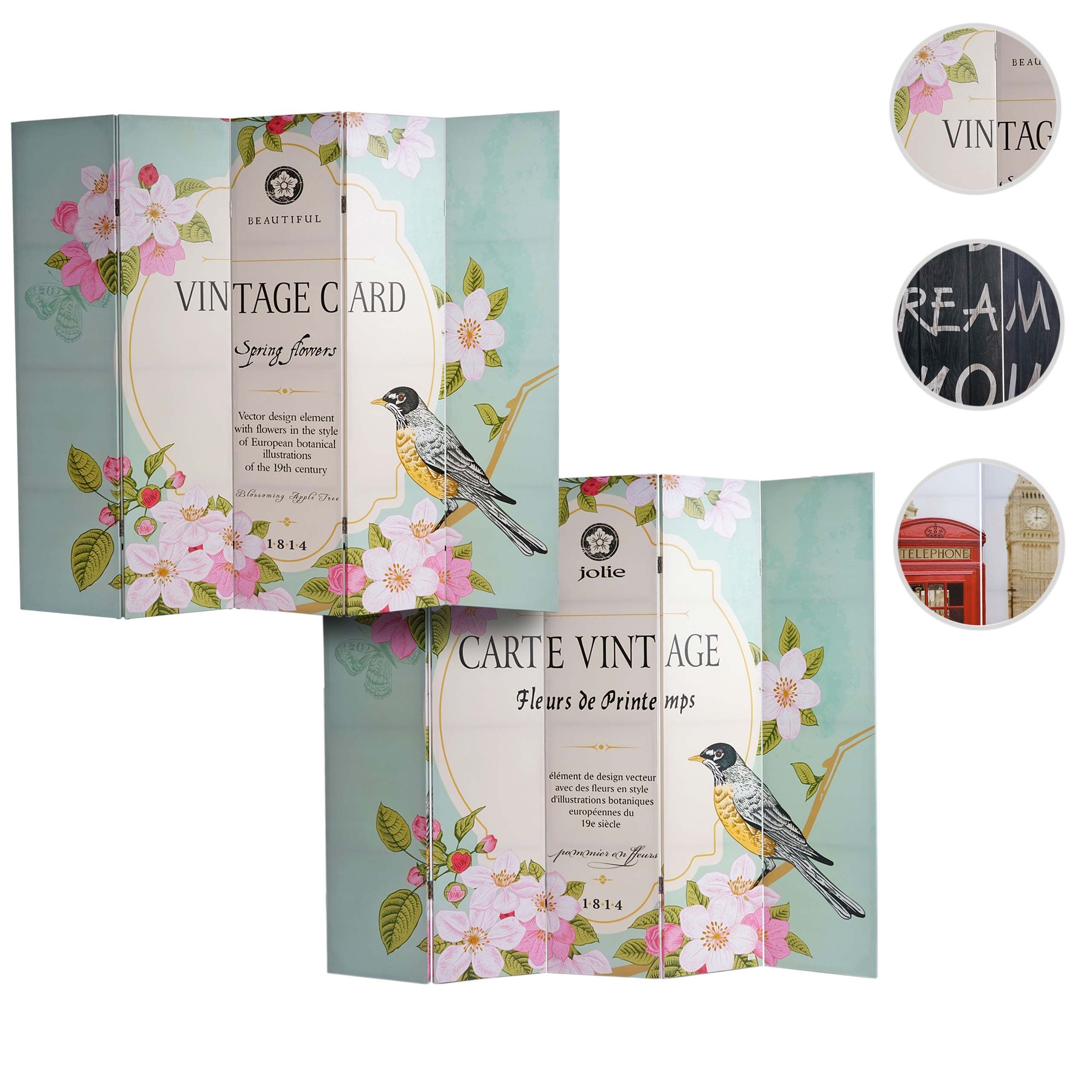 Mendler Foto-Paravent Vintage, Paravent Raumteiler Trennwand