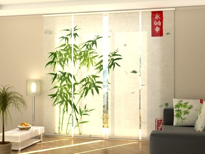 Foto-Schiebegardine Bambus auf Weiß, Flächenvorhang mit Motiv, Fotodruck, auf Maß
