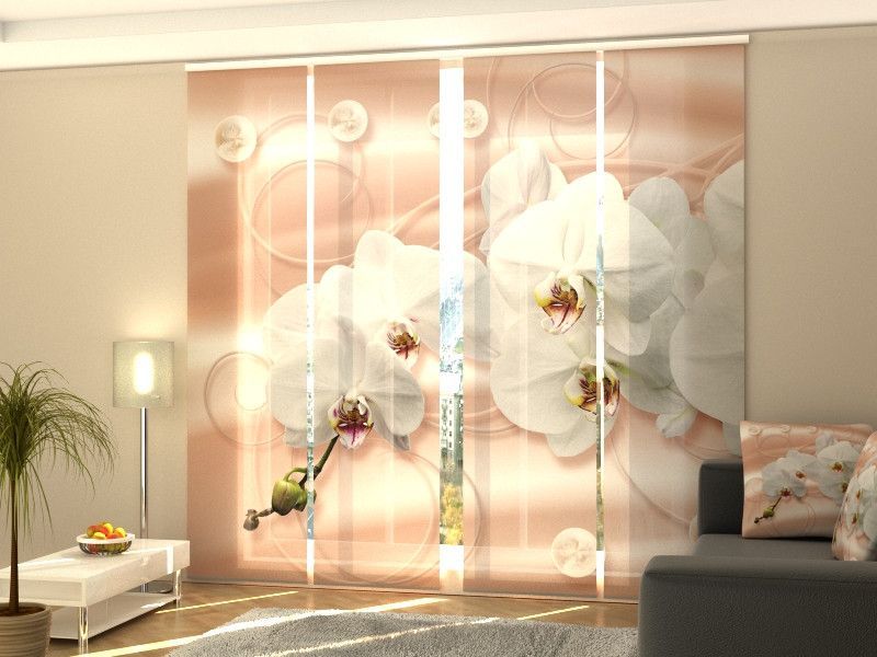 Foto-Schiebegardine Orchidee auf Seide, Flächenvorhang mit Motiv, Fotodruck, auf Maß