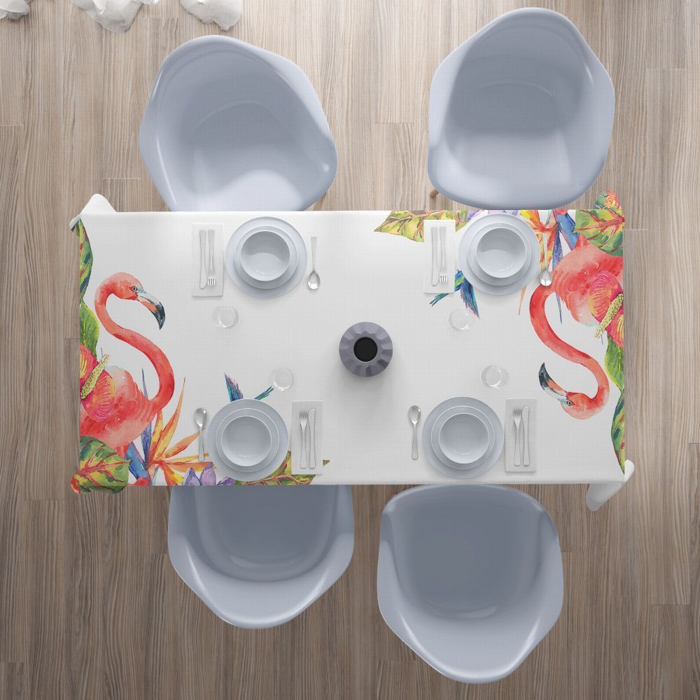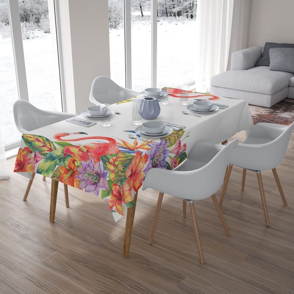 Foto-Tischdecke Flamingos Blumen Tischwäsche mit Motiv Deko Fotodruck auf Maß
