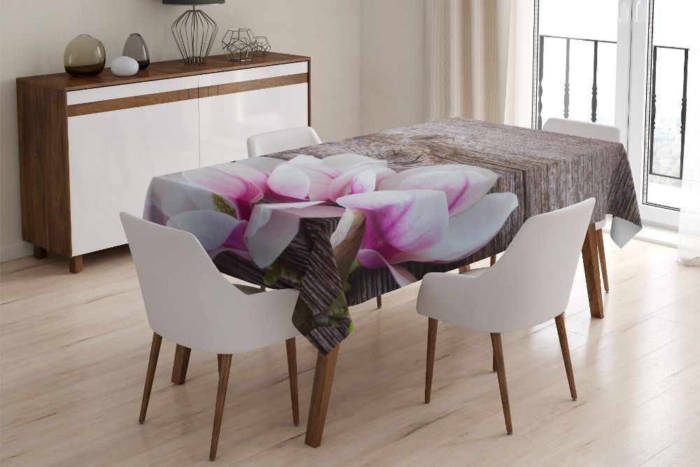 Foto-Tischdecke Magnolie auf Holz Tischwäsche mit Motiv Deko Fotodruck auf Maß
