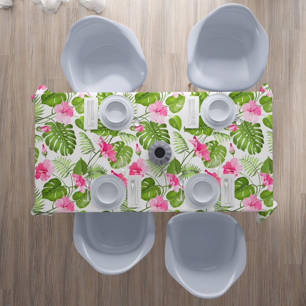 Foto-Tischdecke tropische Blumen Palmen Tischwäsche mit Motiv Deko Fotodruck auf Maß