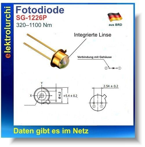 Fotodiode mit Linse SG1226P, Metall, 320-1100 Nm, 3St.