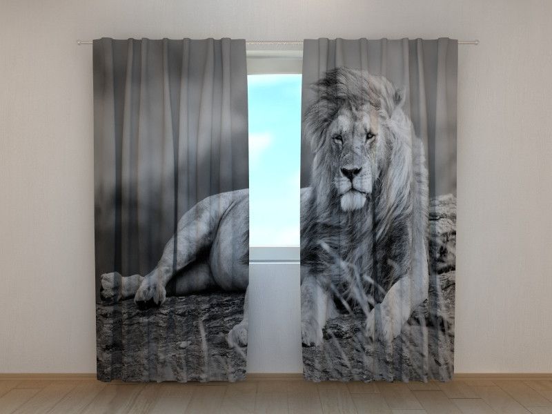 Fotogardine Löwe s/ w, Vorhang mit Motiv, Digitaldruck, Gardine auf Maß