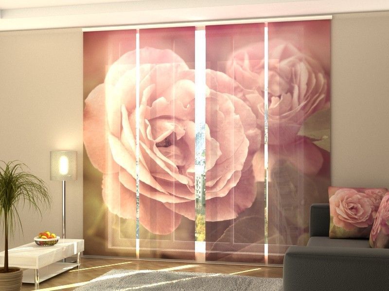 Fotogardine Retro Rose, Schiebevorhang mit Motiv, Schiebegardinen Foto, auf Maß
