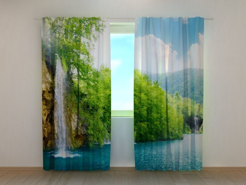 Fotogardine See im Wald, Vorhang mit Motiv, Digitaldruck, Gardine auf Maß