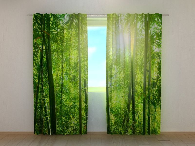 Fotogardine Sonne im Bambuswald, Vorhang mit Motiv, Fotodruck, Gardine auf Maß