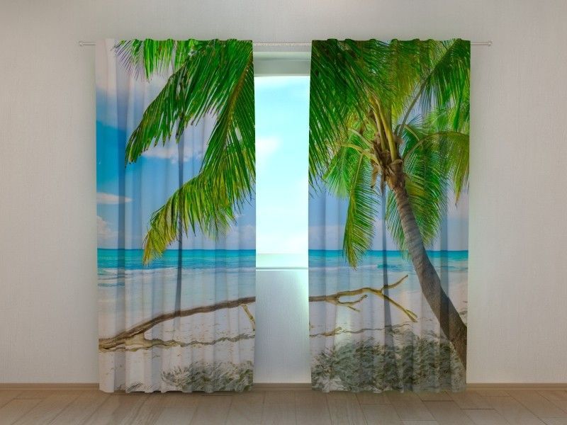 Fotogardine sonniger Tag am Strand, Fotovorhang mit Motiv, Fotodruck, Gardine auf Maß