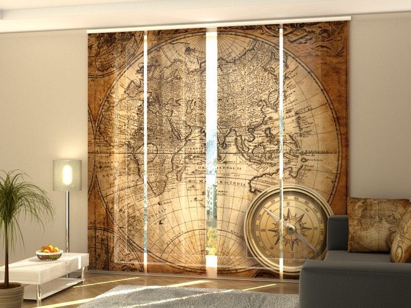 Fotogardine Weltkarte, Schiebevorhang mit Motiv, Schiebegardinen Fotodruck, auf Maß