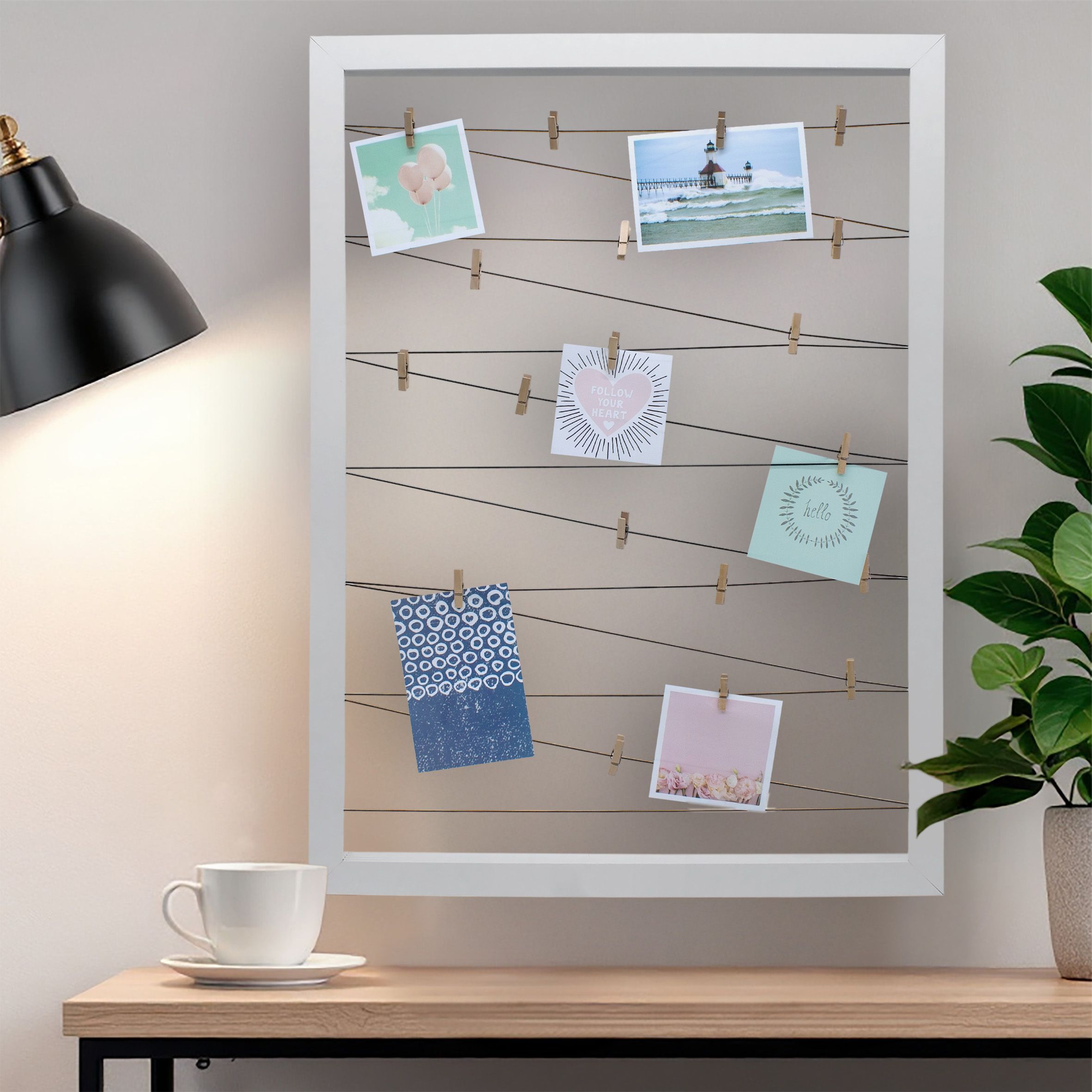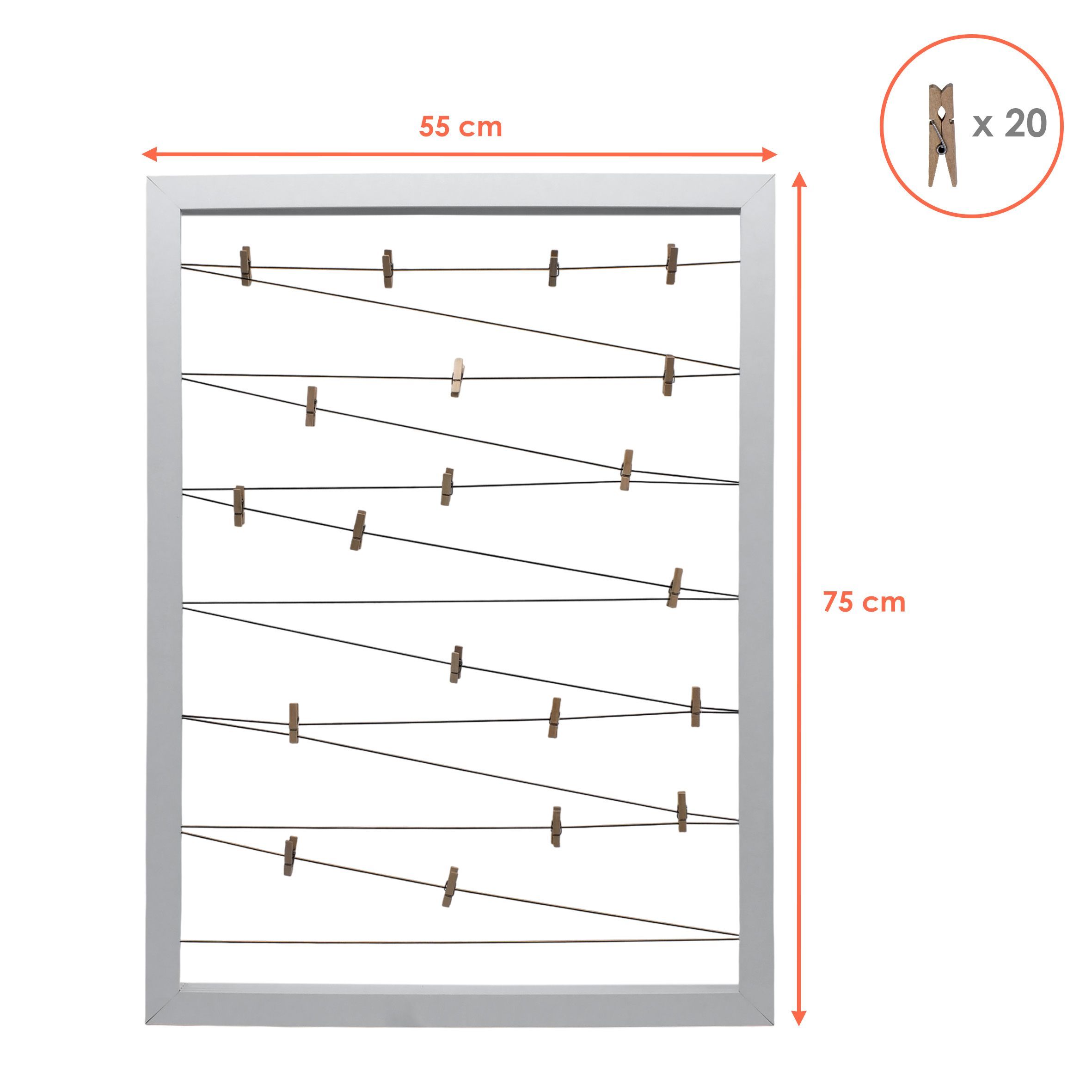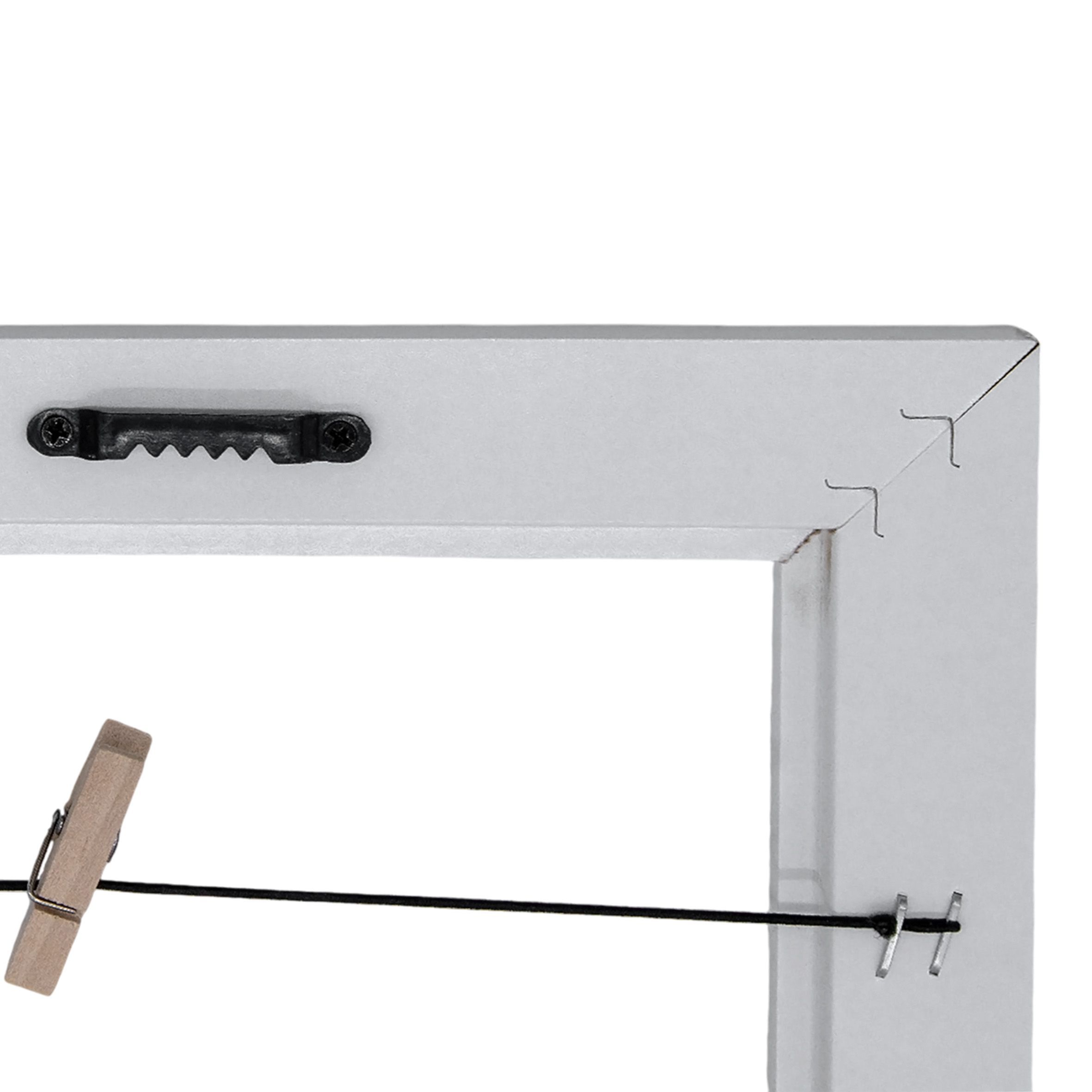 Fotohalter weiß 75x55 cm - Gummileine mit 20 Klammern - Fotorahmen Bilderrahmen