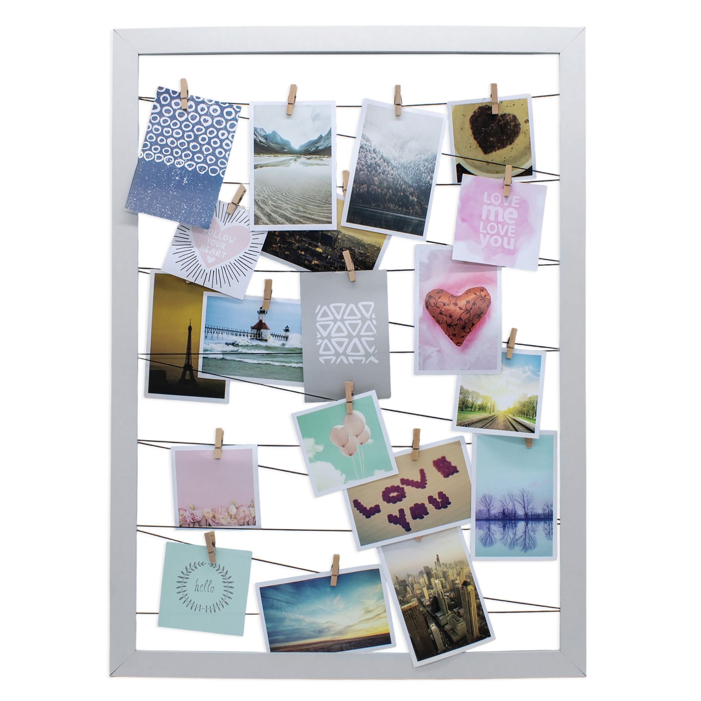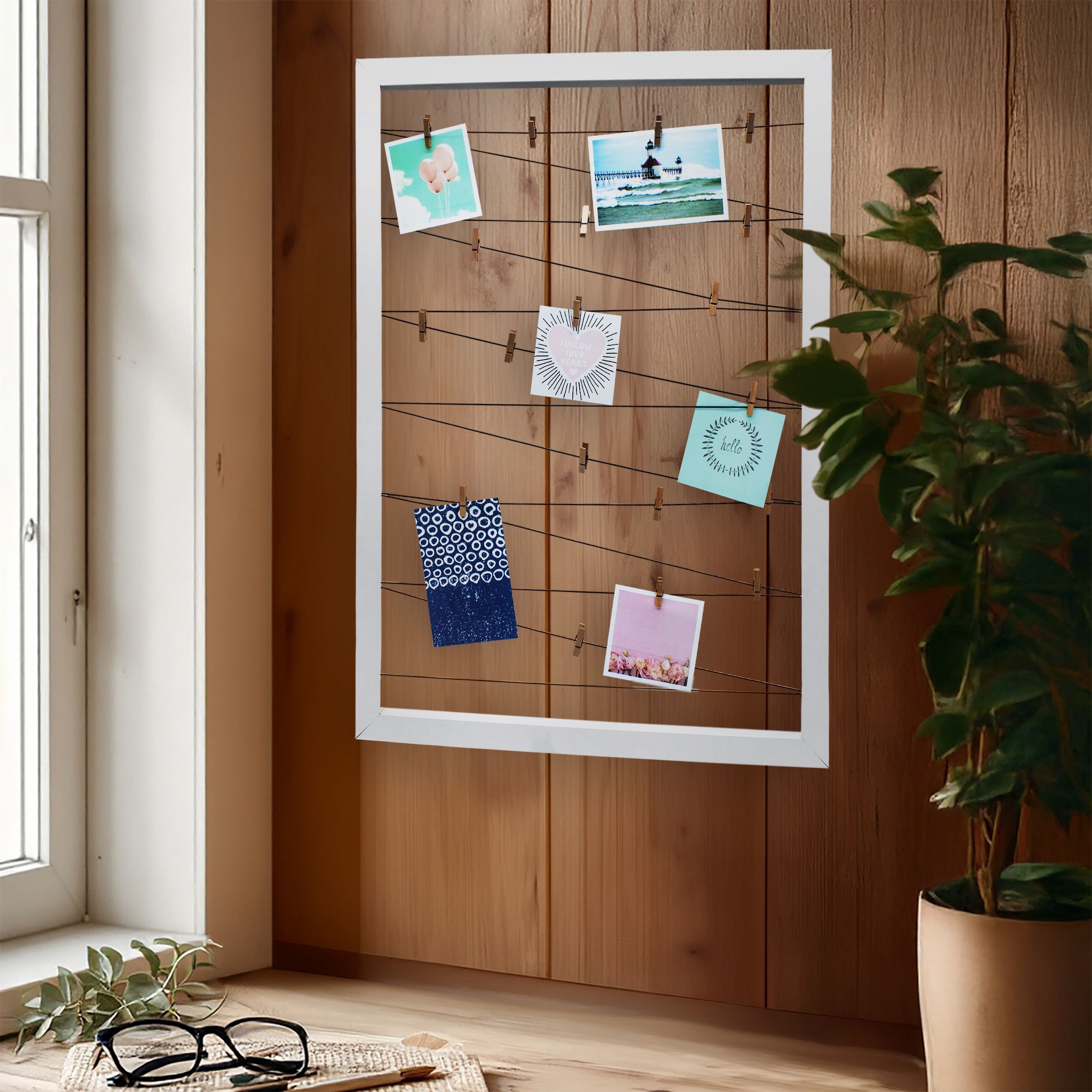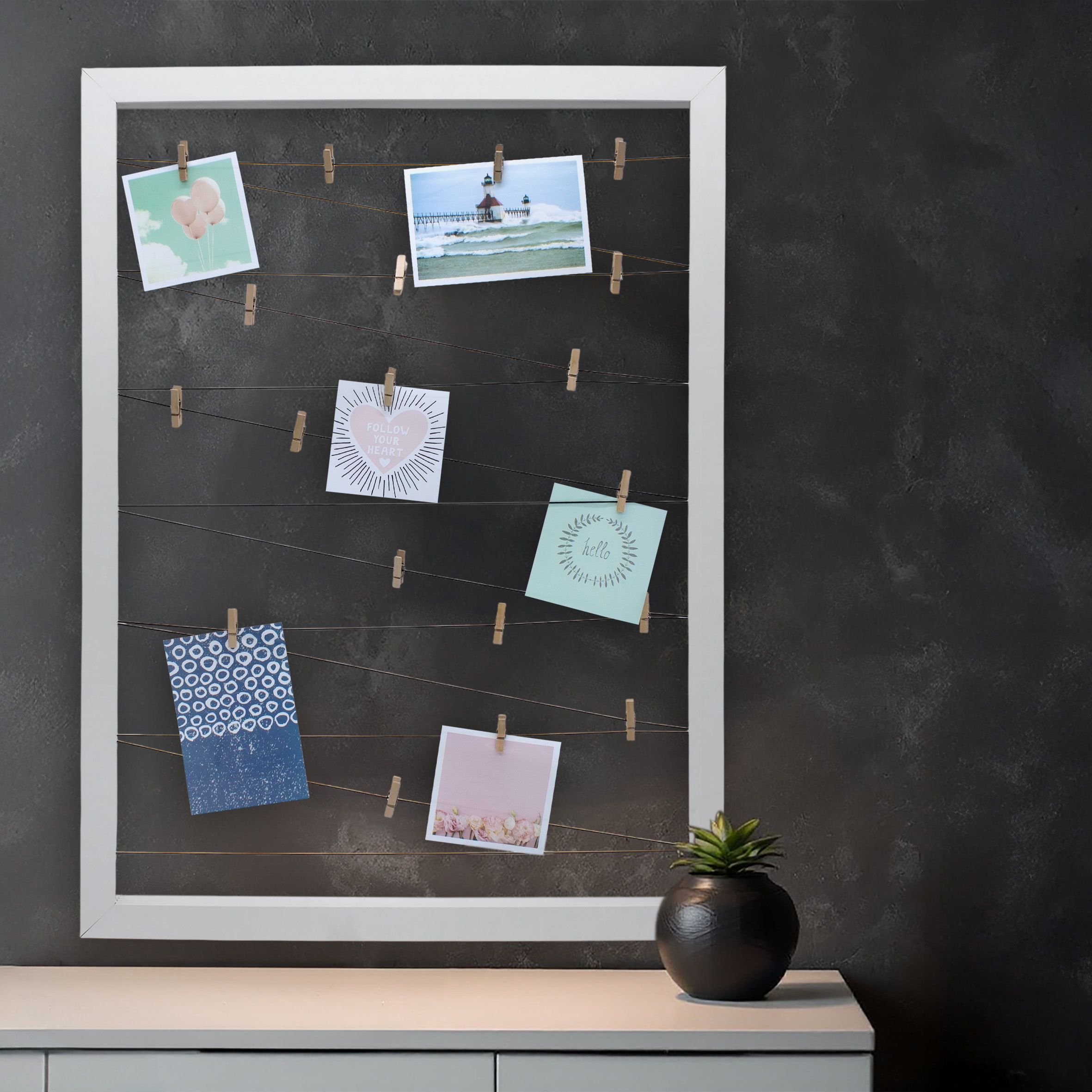 Fotohalter weiß 75x55 cm - Gummileine mit 20 Klammern - Fotorahmen Bilderrahmen