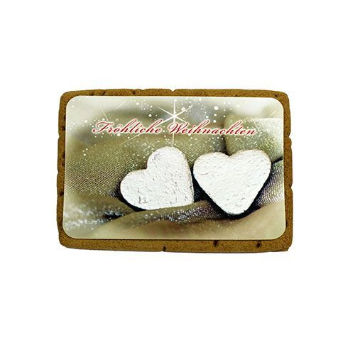 Fotolebkuchen - Motiv Herzen Verschenken Sie diesen individuellen Fotolebkuchen an Ihre Liebsten, Freunde, Geschäftspartner oder Kunden. Besonders schön, als kleine Aufmerksamkeit in der Weihnachtspost. Der Text ist frei wählbar. Der Fotolebkuchen ist in 2 verschiedenen Größen erhältlich. Der Aufdru