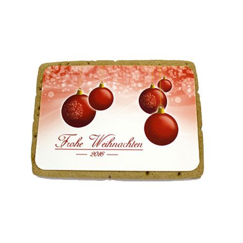 Fotolebkuchen - Motiv Rote Kugeln Verschenken Sie diesen individuellen Fotolebkuchen an Ihre Liebsten, Freunde, Geschäftspartner oder Kunden. Besonders schön, als kleine Aufmerksamkeit in der Weihnachtspost. Der Text ist frei wählbar. Der Fotolebkuchen ist in 2 verschiedenen Größen erhältlich. Der A